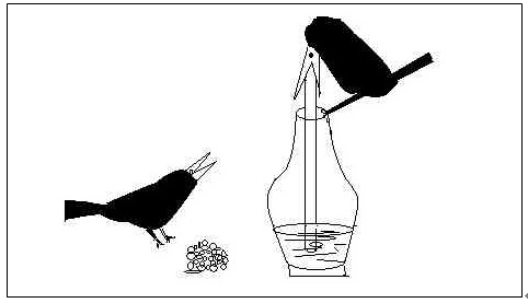 漫畫(huà)題。烏鴉喝水,一個(gè)用石頭喝,一個(gè)用吸管喝,自擬標(biāo)題。